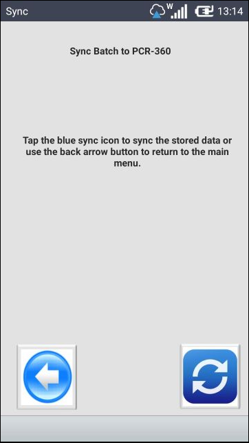 The Sync Data screen allows the User to update the data stored on the Scanner with what is within PCR-360.