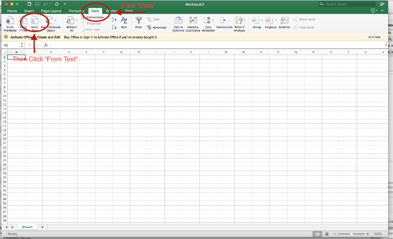 Click “From Text” to open up the file browser and select your CSV file you downloaded.