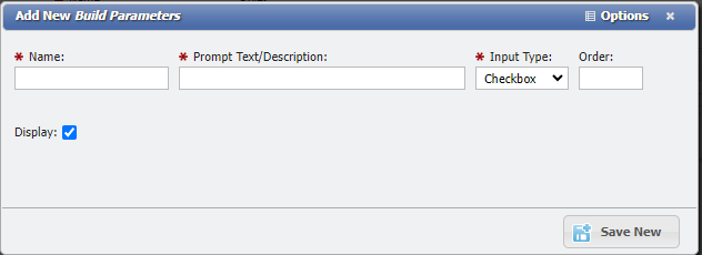Parameters require a Name to be accessed within the Report Logic, as well as a Description to allow the User to know what they are entering. Parameters must also be defined as a specific Input Type, much like User-Defined Fields are. Parameters can also be assigned an Order value to determine the order in which they are presented to be populated by the Report generator. Finally, all Parameters have a Display checkbox to determine if that Parameter value will be shown in the Report's Preview.