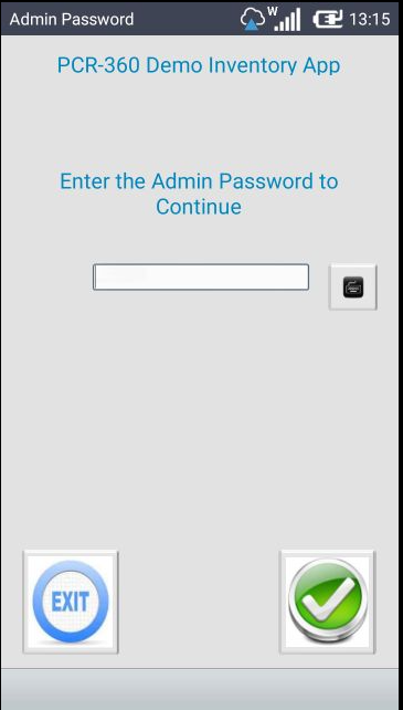 The User must provide the Scanner App's Admin Password to access the Admin Menu.
