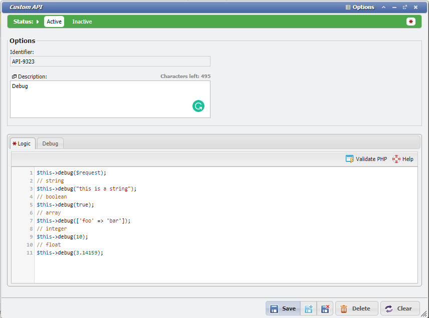 Custom API shares a set of common syntax and available functions with the other types of Custom Logic.