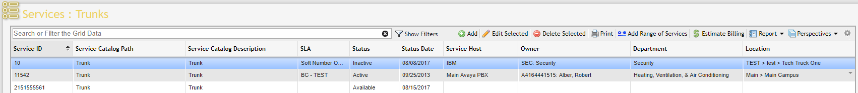 Trunk Services are identical to Other Services with only one exception. To customers who utilize the Service Desk portion of the application, it is recommended that all new Services be added via Service Desk to record a complete audit trail of the provisioning process. The unique service identifier is called 'Trunk ID' instead of 'Service ID'.