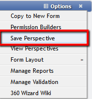 To set up Form Perspectives to accomplish similar work to the Packages functionality Users will need to first set up an example 'Add 360 Wizard', then save a Form Perspective, and finally apply the Perspective whenever that set of Actions are desired. The following steps will help to clarify how to accomplish using Form Perspectives on the Add 360 Wizard.