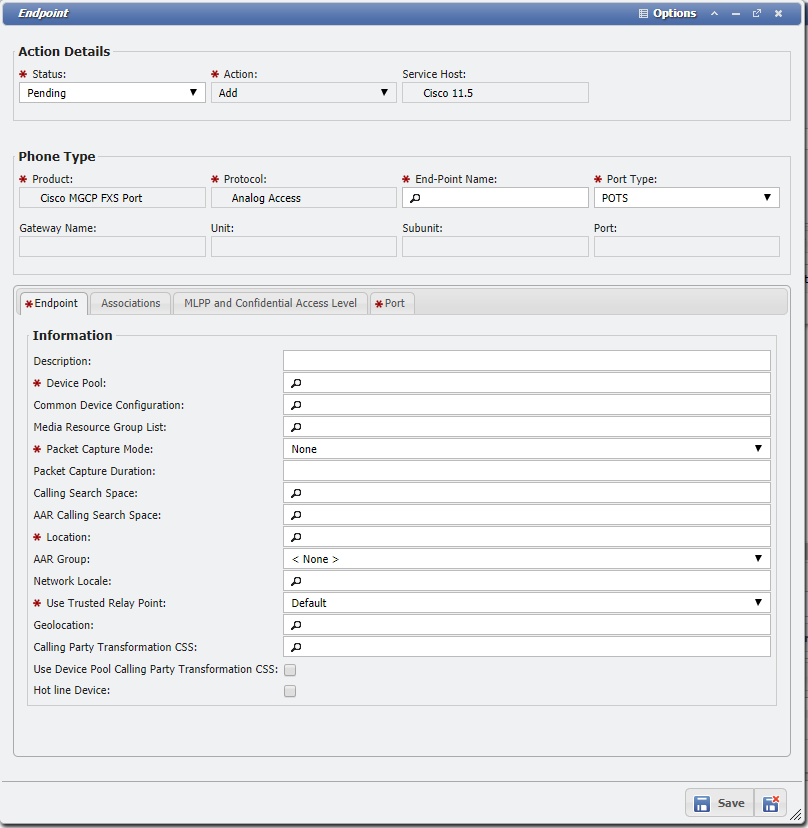 When adding new Analog Endpoints and Analog Phones, depending on the CISCO_AUTO_ASSIGN_ENDPOINT configuration, the Endpoint will be automatically assigned depending on available Servicing Equipment for the Service Desk Action's Location.