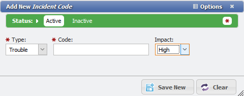 In the Incident Code data entry form, Users are prompted to define several required fields.
