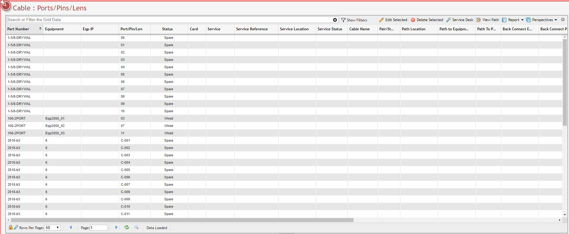 • By clicking the View Path button, the User will open up the Cable: View Path report that the given Ports/Pins/Lens record appears on.